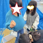 午後から来た小学生の子たちがは初めての豆遊びに参加しました🫘🫘初めての感触に驚きながらも大胆に豆を出したり投げたりして遊んでいました😆