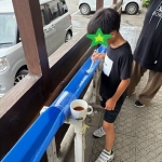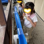 今日は雨が降りそうな天気でしたが、午後から来てくれた小学生の子達は玄関で流し冷や麦をしました!昨日は麺やトマトを流してましたが、今日は具材が増えて、ソーセージやキュウリも流していました🥒