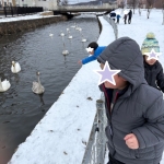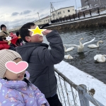「早く行きた~い💜」気持ちではあったようですが、まずは白鳥のエサやりです。
